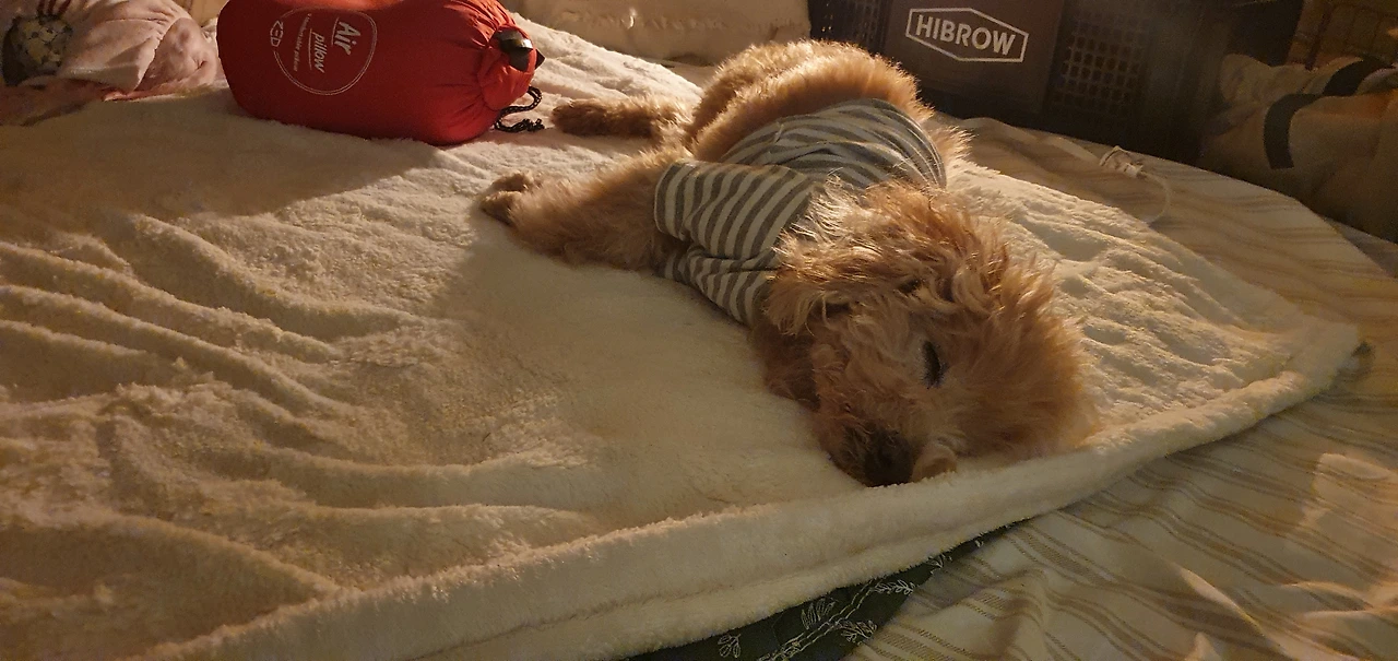 캠핑이 좋은듯한 푸돌이. 집에서보다 더 잘잔다.