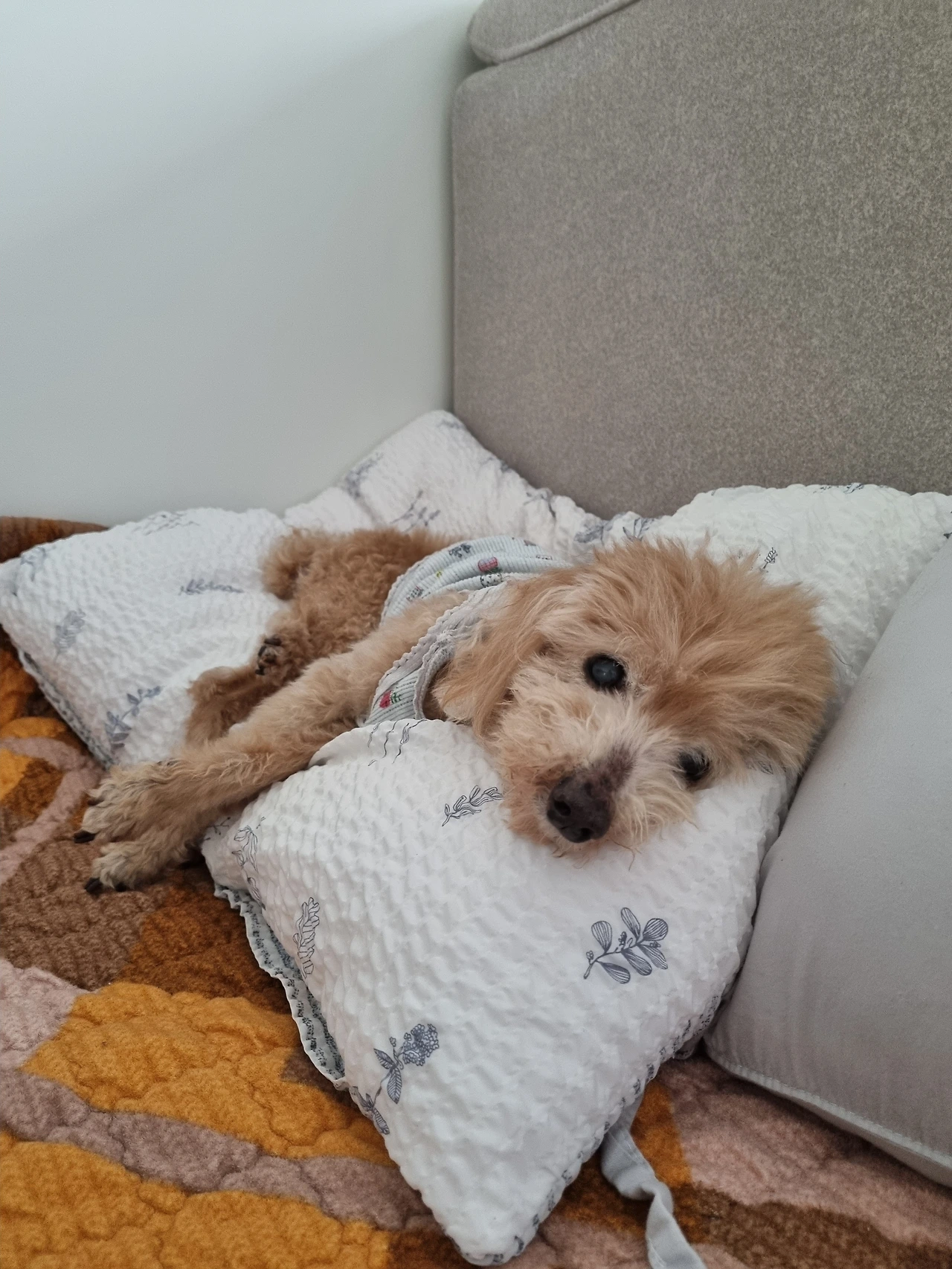 아내의 얼굴을 보니 다크서클이 쭈욱 내려와 있다. 간밤에 노견 푸돌이와 방구를 보살피느라 잠을 설친 게 분명하다.