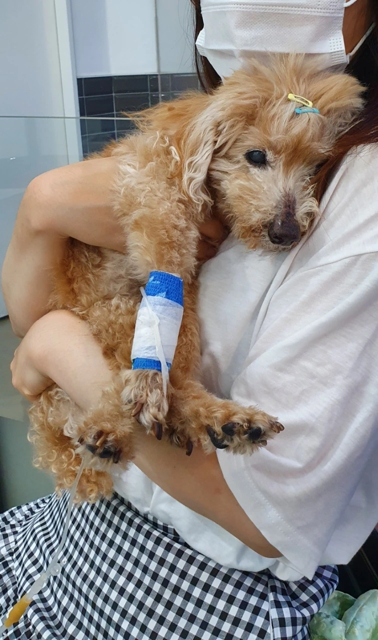 전화기 너머 들리는 아내의 다급한 소리를 듣자니 제 마음이 무너져 내리는 것 같습니다. 끝내 엉엉 울어버린 아내. 다행히 근처에 있었던 형님이 집을 방문해서 푸돌이를 데리고 병원에 가기로 했습니다.