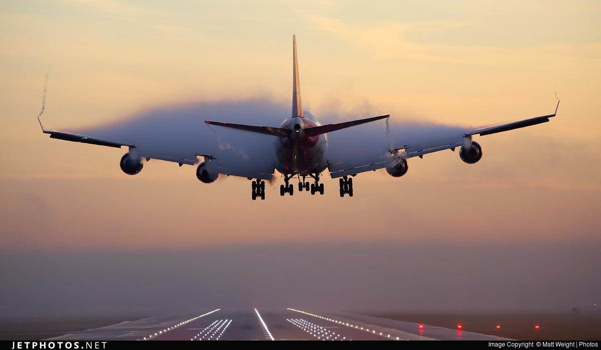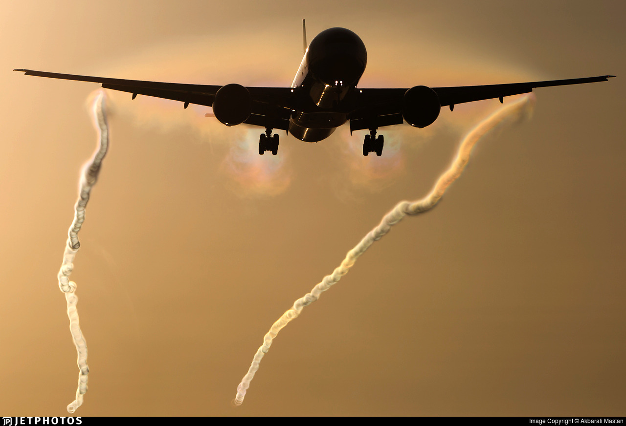 어떻게 비행기 주변의 온도가 순식간에 낮아질 수 있었던 것일까? 무엇이 온도를 낮춘 것일까? 일단 비행기 사진들을 살펴보며 단서가 될 만한 것을 찾아보자. 구름이 어디에 생겼는지 살펴보니 일단 날개 위에 생긴 구름들이 제일 눈에 띄고, 자세히 보면 엔진 흡입구도 약간 뿌옇다.