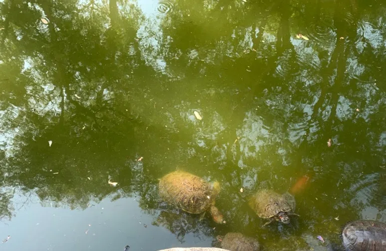 왠지 중국 생각이 날 정도로 ㅋㅋㅋ 거북이가 연못 주변에 빙 둘러앉아 등을 말리고 있었어요. 연못이 위, 아래 두 군데 있었는데 아래쪽에 더 많이 있었어요.