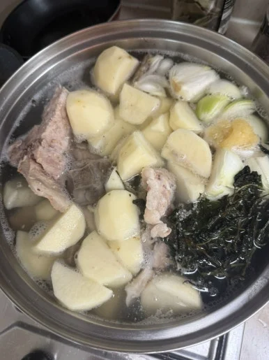 뼈 4kg에 15000원, 2kg씩 두 번, 큰 솥으로 끓여 먹으니 배가 든든하고 추위도 무섭지 않다. 웃으면서 요리하는 엄마가 돌아왔다! 매일 저녁 가스렌인지가 바쁘다 바빠. 브런치 연재의 최대 수혜자는 우리 가족임에 틀림없다. 요리의 신을 다시 불러준 브런치 그리고 읽어주신 독자분들께도 깊이 감사드린다.