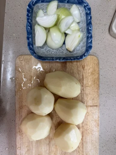 3. 양파, 감자 준비. 시래기가 없으니 곤드레나물을 넣어보자! (먹어보니 맛있음)