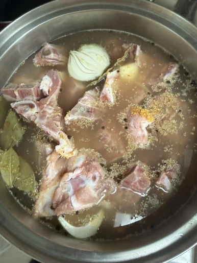 1. 돼지뼈를 설탕 넣은 물에 2시간쯤 담그기