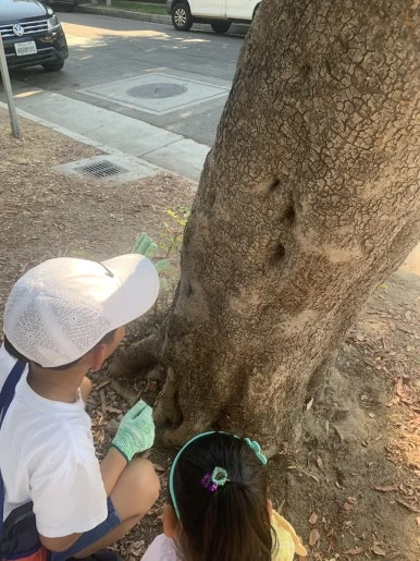 아래 사진에서 도마뱀을 찾아보세요! 나무껍질 사이 틈으로 쏙! 들어가더니 고개만 빼꼼 내밀었어요! 사진 찍어놓고도 다시 보니 잘 안 보여서 한참 찾았습니다 ^^