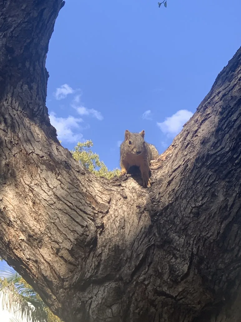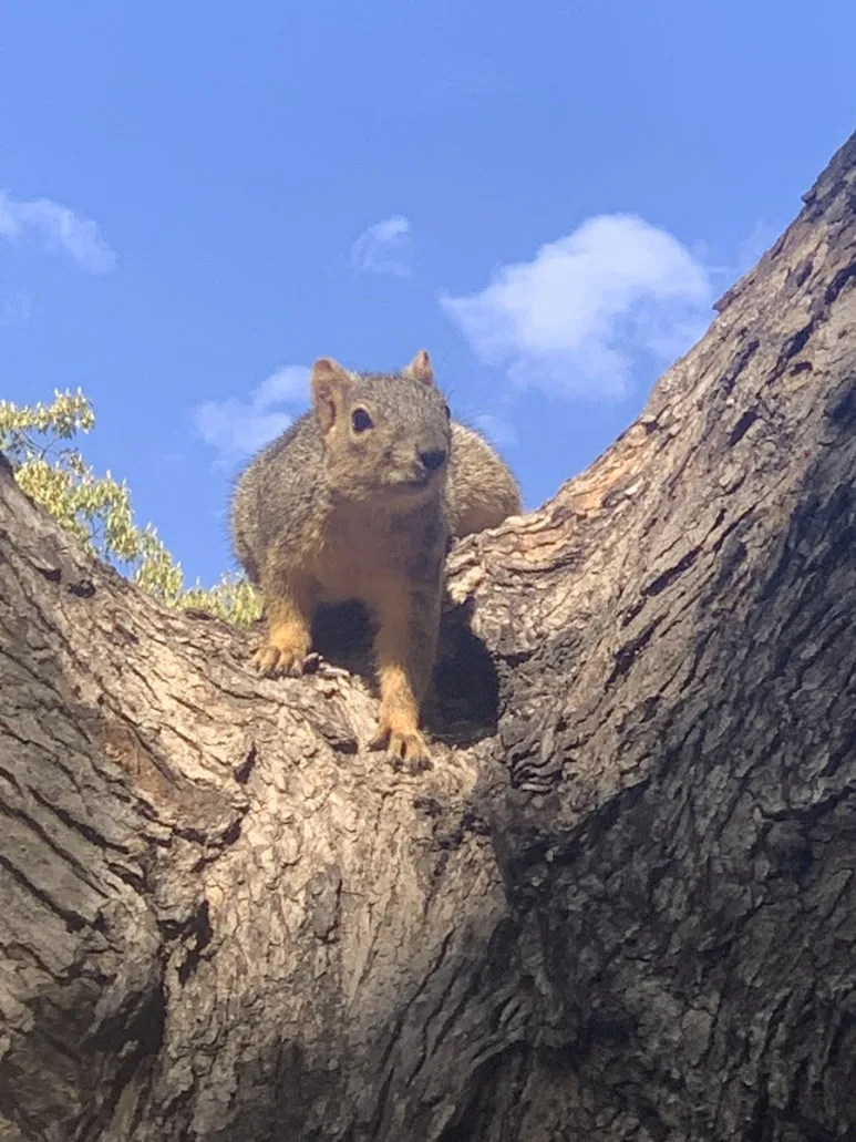 어디서 만나도 반가운 다람쥐~! 저희를 보고 멈칫~! 하던 다람쥐입니다. 나무 위로 올라가더니 빼꼼 얼굴을 내밀고, 조금 더 가까이 코를 내밀었습니다. 파란 하늘과 나무와 다람쥐. 그림 같이 예쁜 모습을 아이폰 XS가 용케도 잘 담았습니다.