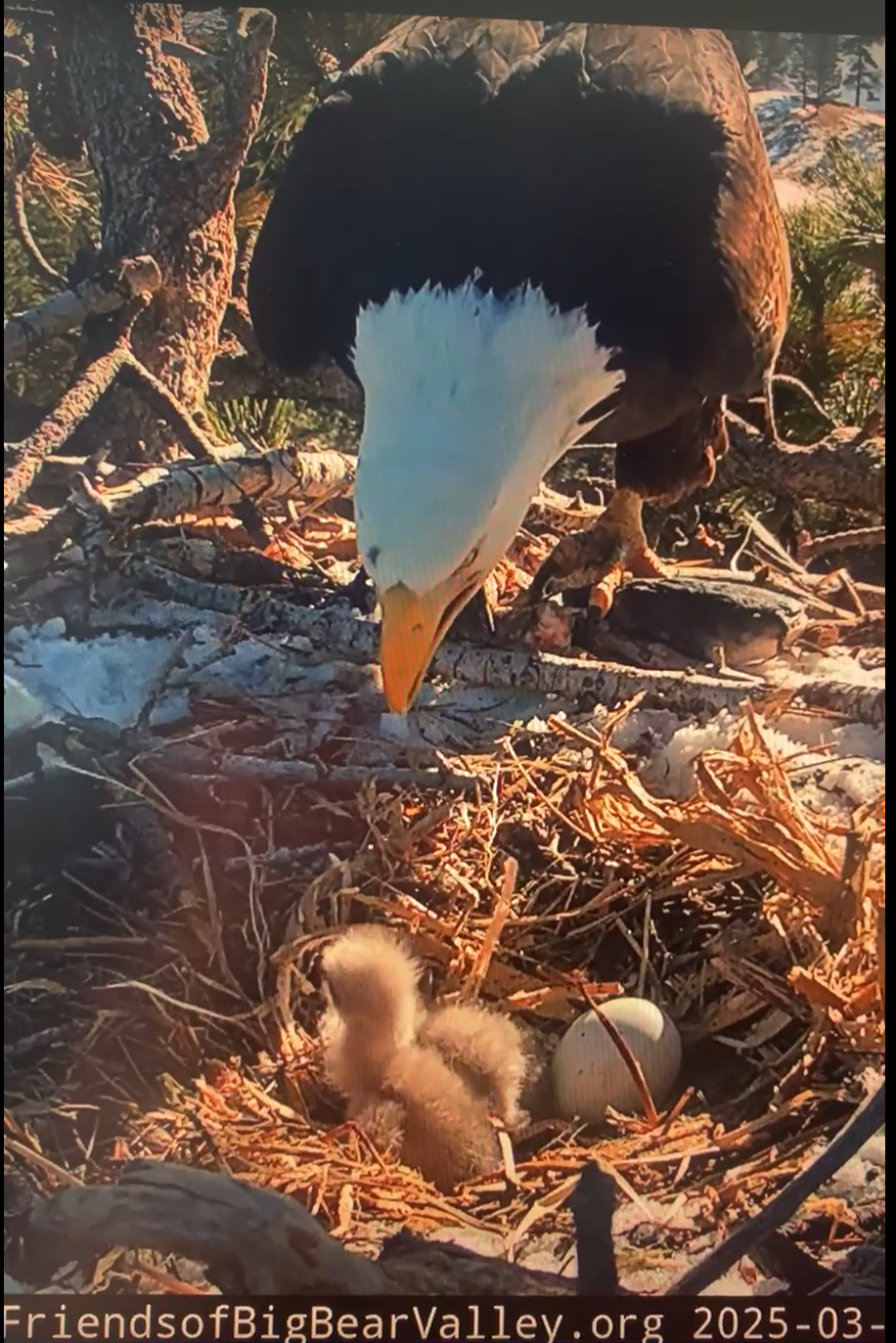 캘리포니아 빅베어레이크(Big Bear Lake)에 사는 흰머리독수리부부의 아기 독수리들이 인기스타입니다. 지난 1월 20일경에 엄마 재키(Jackie)는 알을 세 개 낳았고, 아빠 쉐도우(Shadow)와 함께 보살폈어요.
