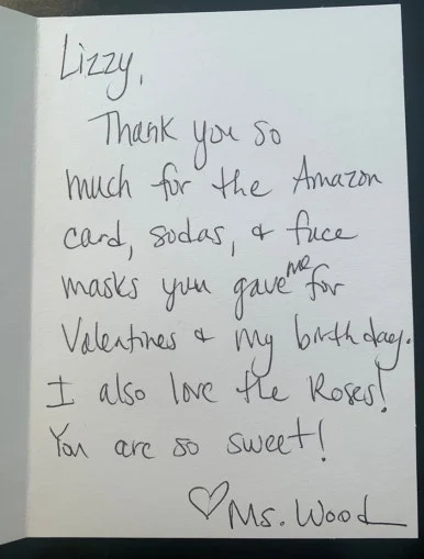 어떤 학교는 Room parent라고 반 대표 엄마가 있어서 선생님 생신 파티도 거하게 한다고 해요. 그에 비하면 이 학교는 선물도, 규모도 소소합니다. 그래도 축하를 전하는 마음을 받아주셔서 감사하고, 이렇게 또 마음을 전해주셔서 감사할 따름입니다.