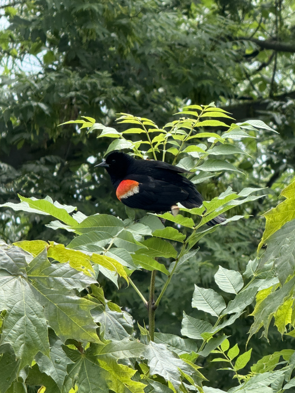 나이아가라 폭포 근처에서 정말 많이 보였던 새에요. 검정색에 날개 위쪽만 흰색과 진한 주황빛이 있는 새!