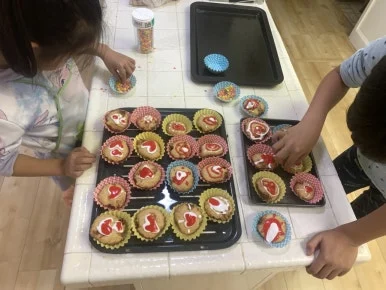 저희는 쿠키를 만들어갔어요. 초콜릿도 몇 개 샀구요. 혹시 알레르기가 있는 학생이 있는지 여쭤보니 없다고 하셔서 일반 밀가루로 만들었어요. 아이들은 쿠키 만들면서 신나고, 친구들하고 나눠먹을 생각을 하니 더 설레었던 것 같아요.