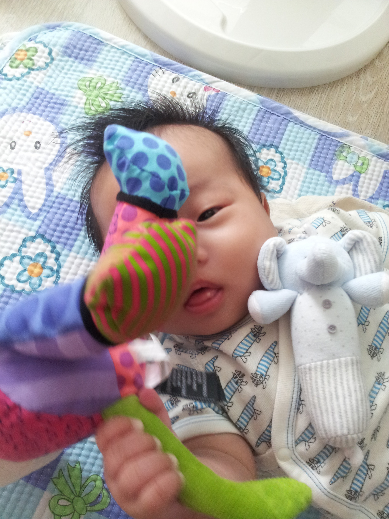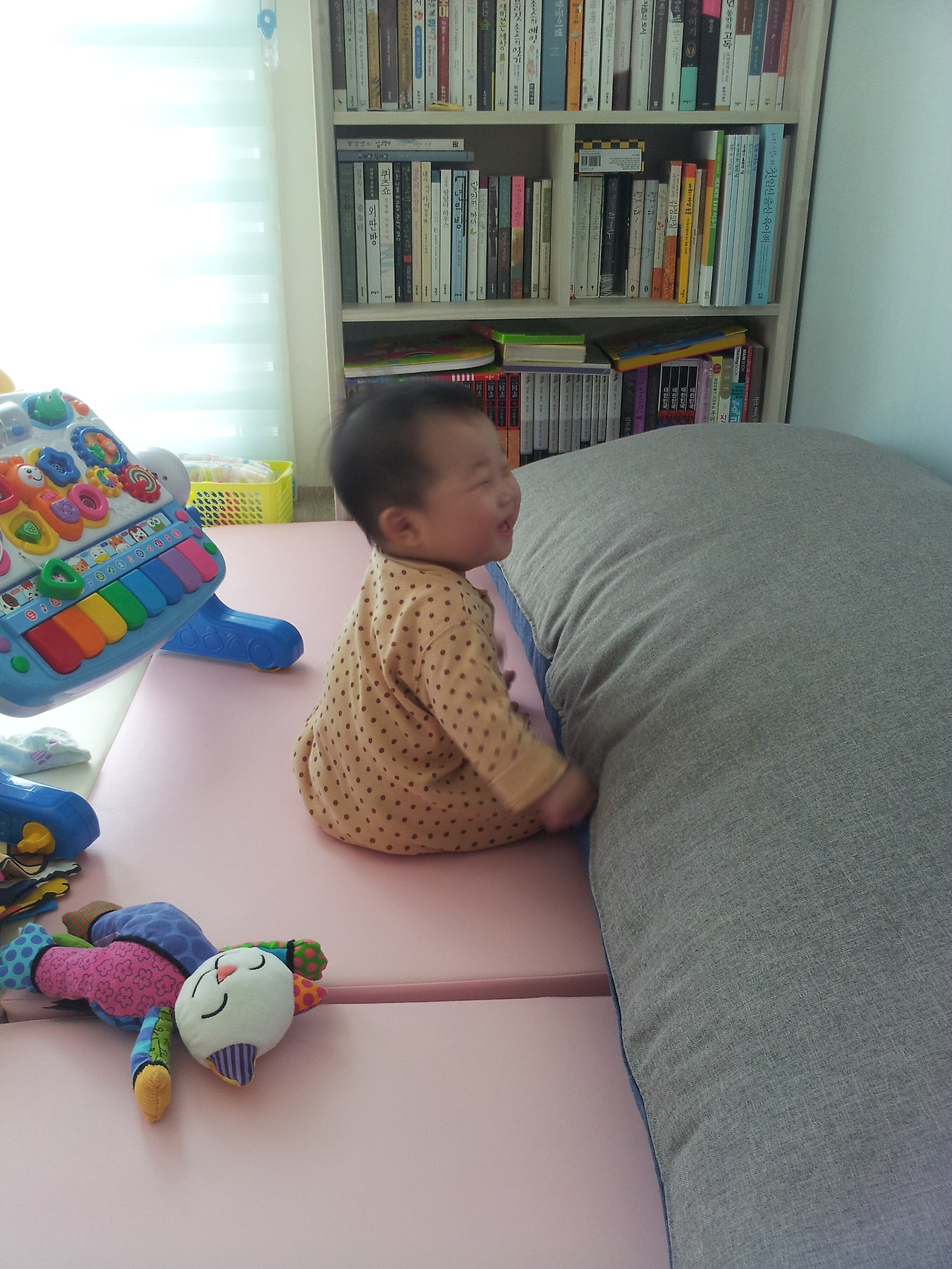 검색을 했더니 컬러가 다양한 장난감이 아이 시력 형성에 좋다고 하여 저 인형을 골랐던 건데, 아들은 샐리가 항상 웃고 있어서 너무 이쁘다고 했다.