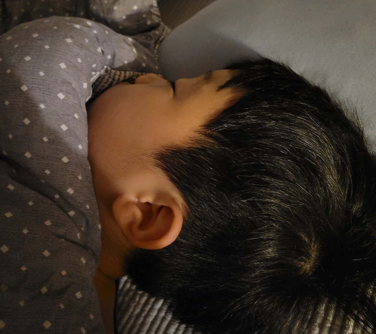 새삼스레 주고받는 대화. 아직 자고 있으니 깨우지 마라며, 둘 다 잠든 아이의 볼을 만지작거리면서 서로를 타박한다.