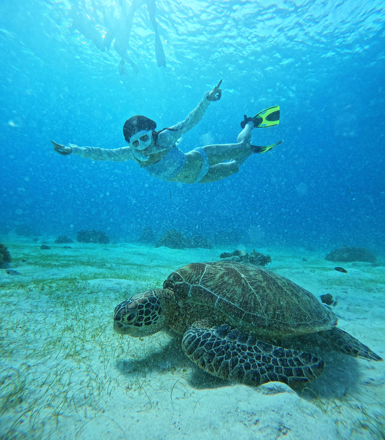 뭐, 확실히, 아캔스윔이긴 했으나..... 잠수풀의 잔잔한 수심만 뚫을 줄 알았던 나는 바닷물의 조류와 부력을 뚫을 수가 없어 처음엔 들어가질 못 했다. 바다 안으로 들어가고 싶어 구명조끼를 입지 않았던 건데 한참 동안 발버둥만 치며 물 위에 둥둥 떠있어야 했다. 가이드들이 저 안에 있는 거북이를 가리키며 터틀, 터틀, 했지만 들어갈 수가 없어 와이캔트아이 소리만 반복했다.