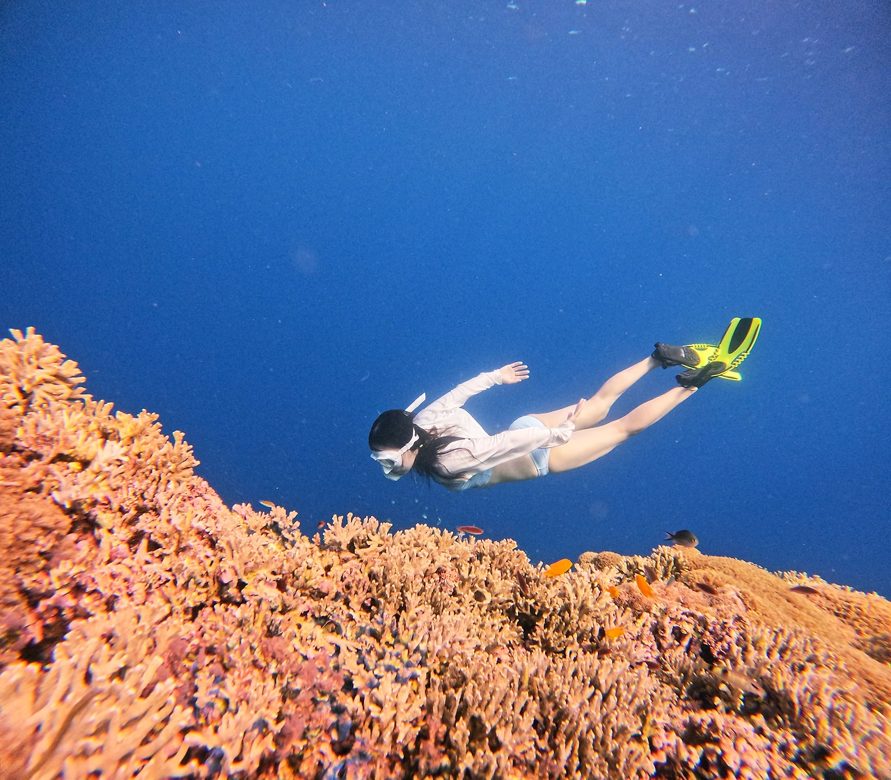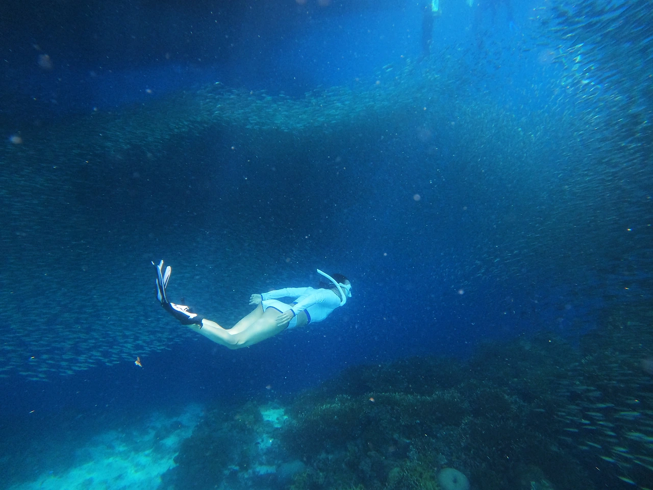 잠수풀에서 처음 10미터를 찍은 날. 선생님께서 내려갈 수 있는 만큼 내려가 보라길래 이퀄라이징과 피닝질을 반복하며 열심히 내려갔다. 20미터가 가까워오자 이전과는 조금 다른 느낌이었다. 폐가 살짝 오그라드는 듯 하면서 호흡이 가빠왔지만 두렵다기 보단 한없이 고요하고 평화로워서 그 순간 문득 보홀의 바다를 떠올렸다. 그 바다에 들어가면 어떤 느낌일까. 그 파랑은 어떤 파랑일까. 나중에 수면으로 돌아왔을 때, 선생님은 그렇게 급하게 힘으로만 내려가면 안 된다며 프리다이빙에서 필요한 건 속도가 아니라 '천천히'와 '느리게'라고 하셨다. 넵, 기억하겠슴돠!! 라는 대답과 함께 보홀 여행 일주일 전에 자격증을 따게 된다.