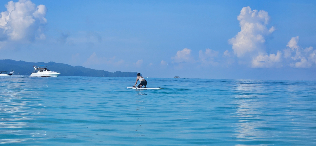못 이기는 척 남편을 따라 바다로 나갔다. 나가자마자 패들보드를 타라며 호객꾼들이 손짓을 했다. 30분에 400페소라기에 못 이기는 척 패들보드 위에 올라탔다. 아들만 숙소에 두고 나왔기에 어차피 30분을 온전히 탈 수도 없었다. 그저 바닷물 위에 섰을 때 발바닥에서 느껴지는 감각이 궁금했던 거다. 패들보드 아래의 물을 발로 누르며 배에 힘을 주고 균형을 잡을 때의 느낌, 노를 저으며 나아갈 때의 느낌이 궁금했다. 아주 잠시라도 괜찮았다. 노가 바닷물을 밀면서 내 몸이 앞으로 나아가는 느낌을 알고 싶었다. 넘어지지 않고 버텨내면서 노를 저어 바닷물을 가를 때 헤엄치듯 움직이는 빛이 보고 싶었던 거였다.