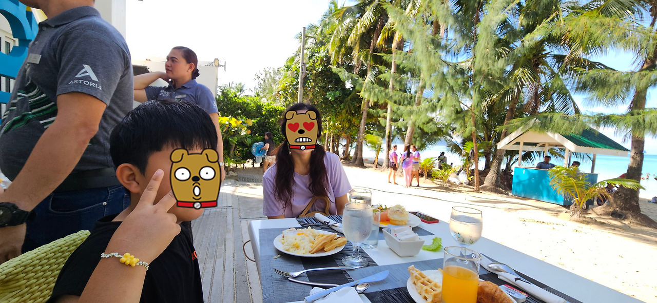 스 3에서의 숙소는 그럭저럭 적당했다. 크게 나쁘진 않았지만 굳이 또 가고 싶을 정도로 좋을 것도 없었는데 딱 하나 맘에 들었던 것이 조식뷰였다. 매일 아침 화이트 비치를 바라보며 조식을 먹을 수 있어 그거 하나는 진짜로 행복했다. 아, 근데 쓰다 보니 이 정도면 좋은 거 맞잖아? 나란 녀석, 거 참 디게 불평이 많구나?