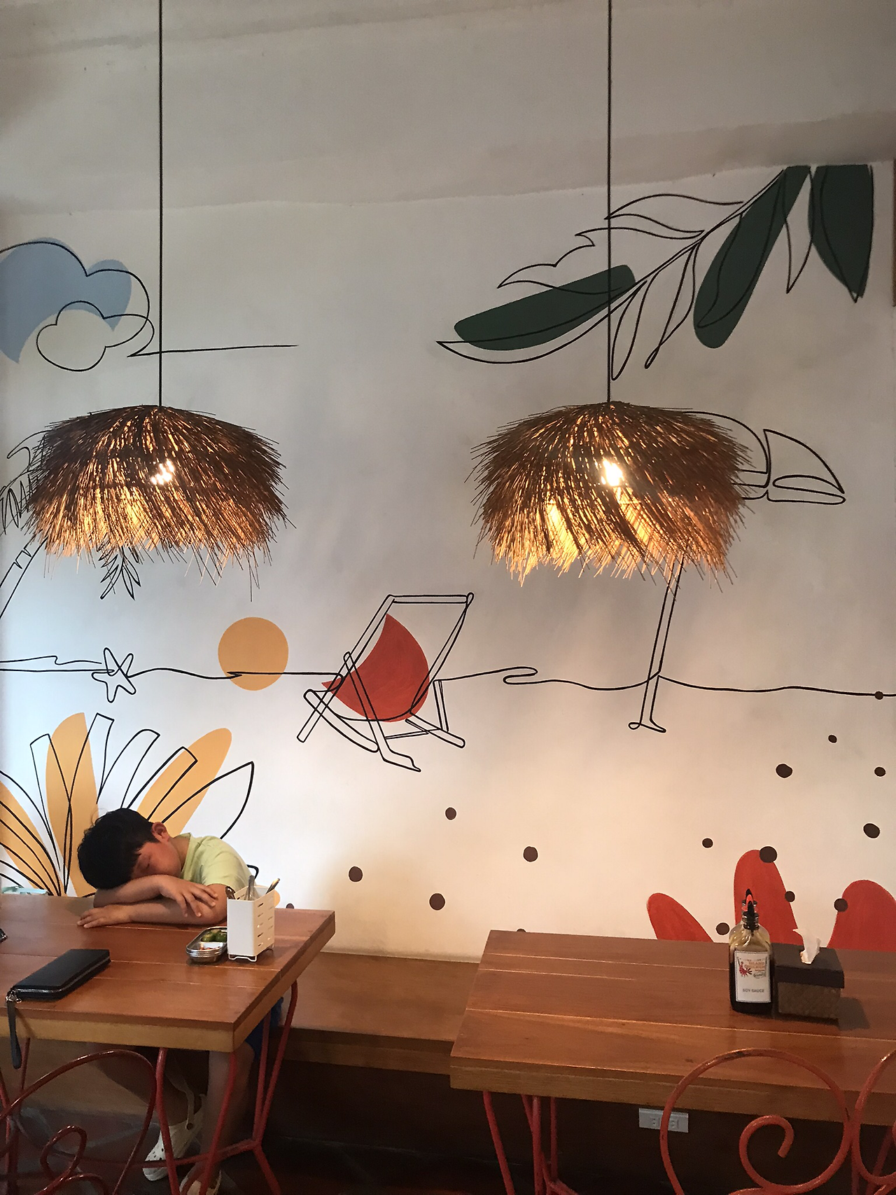 작년엔 건기에 왔던 터라 바람막이가 없었는데 이번엔 우기라서 오픈형 식당이 있는 곳은 어김없이 바람막이가 있었다. 날씨는 내내 좋아서 건기와 다를 바가 없었는데 그 예쁜 바다를 저렇게 가려놓으니 많이 아쉬웠다. 다음엔 꼭 건기에 와야겠다는 다짐을 했다.