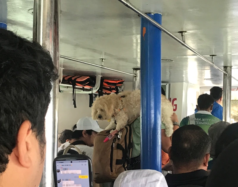 말룸파티로 가기 위해선 보라카이에서 배를 타고 카티클란으로 갔다가 다시 1시간가량 차를 타고 이동해야 한다. 누군가가 커다란 인형을 어깨에 메고 배안으로 들어오기에 아, 개네... 하고 있었는데 인형이 계속 움직여서 헐, 개네? 했다.