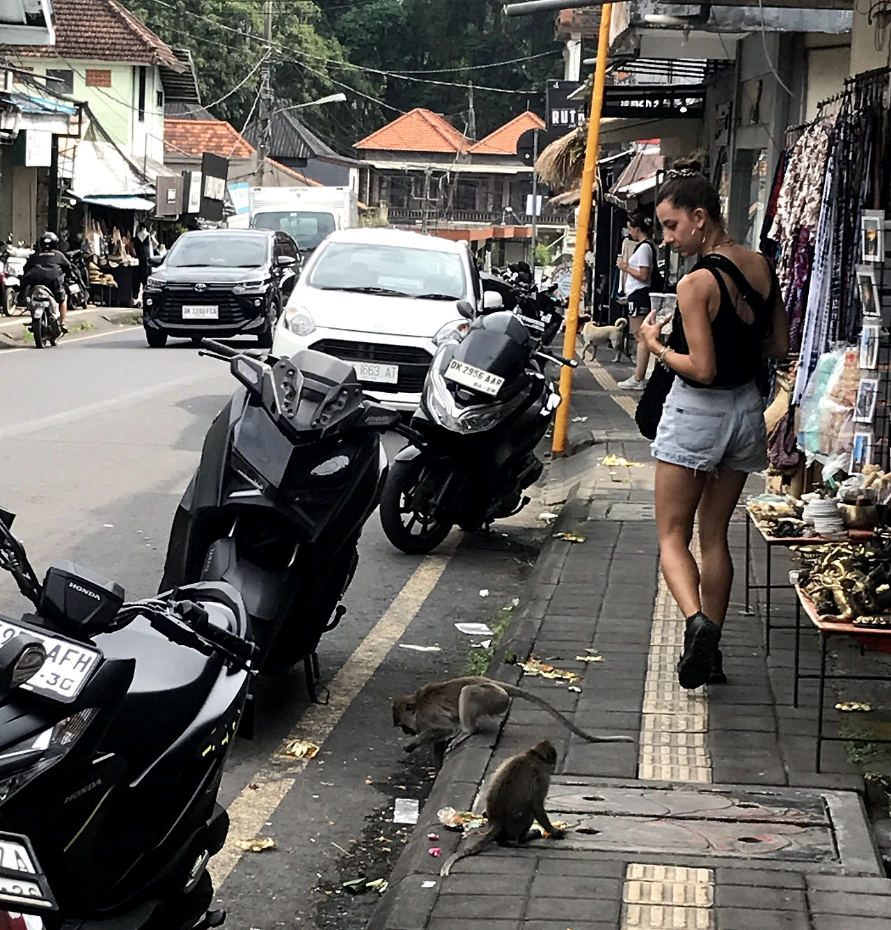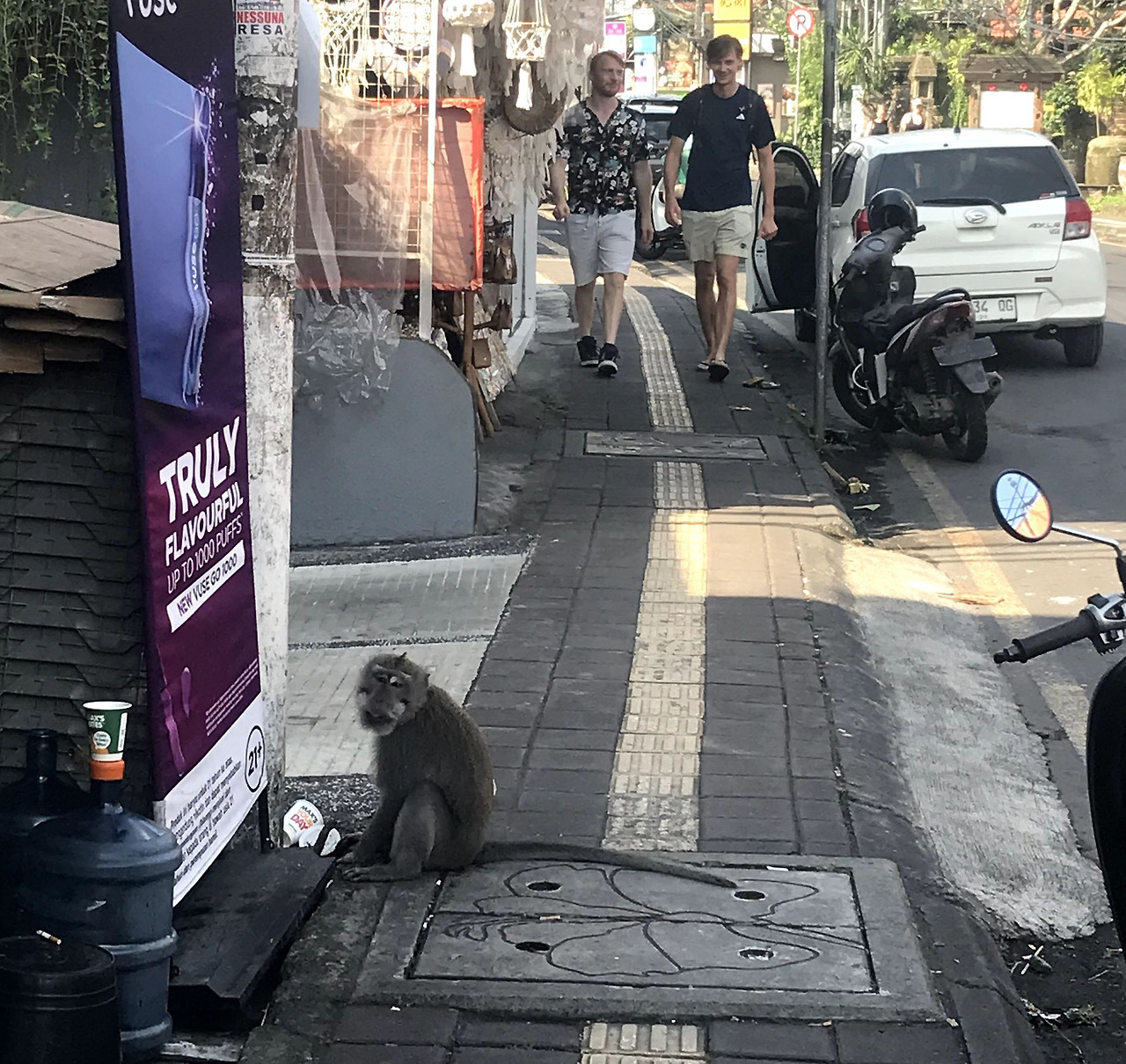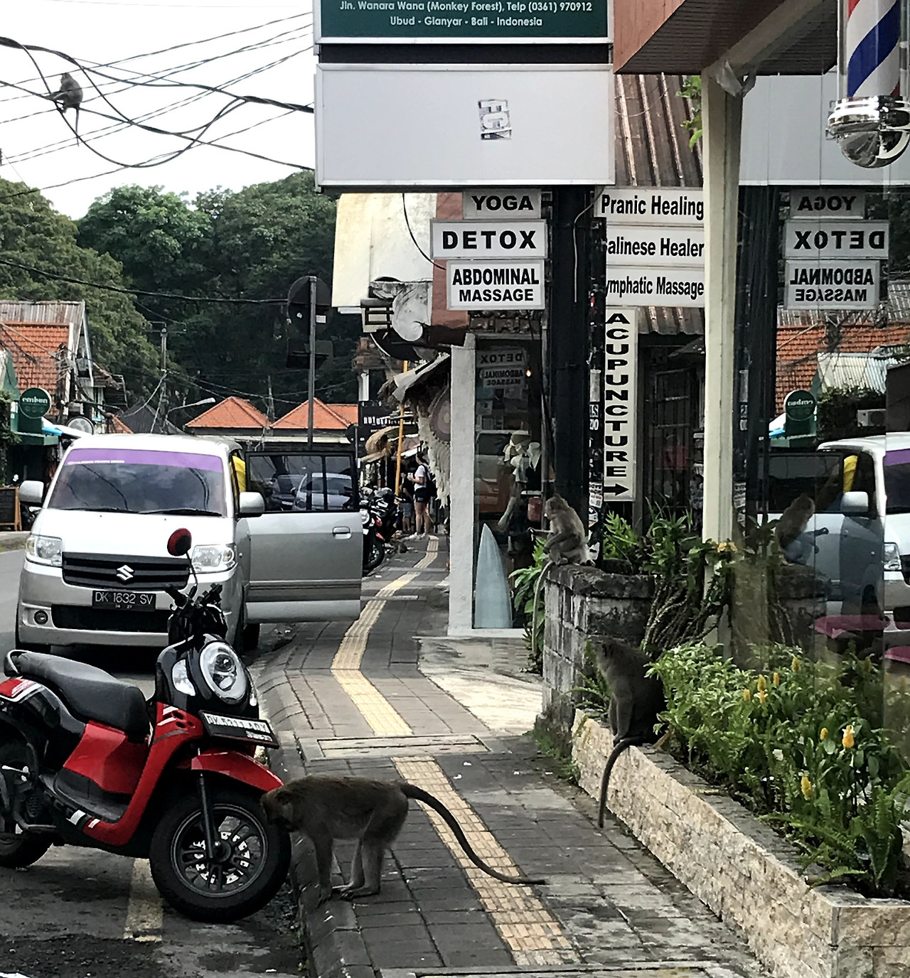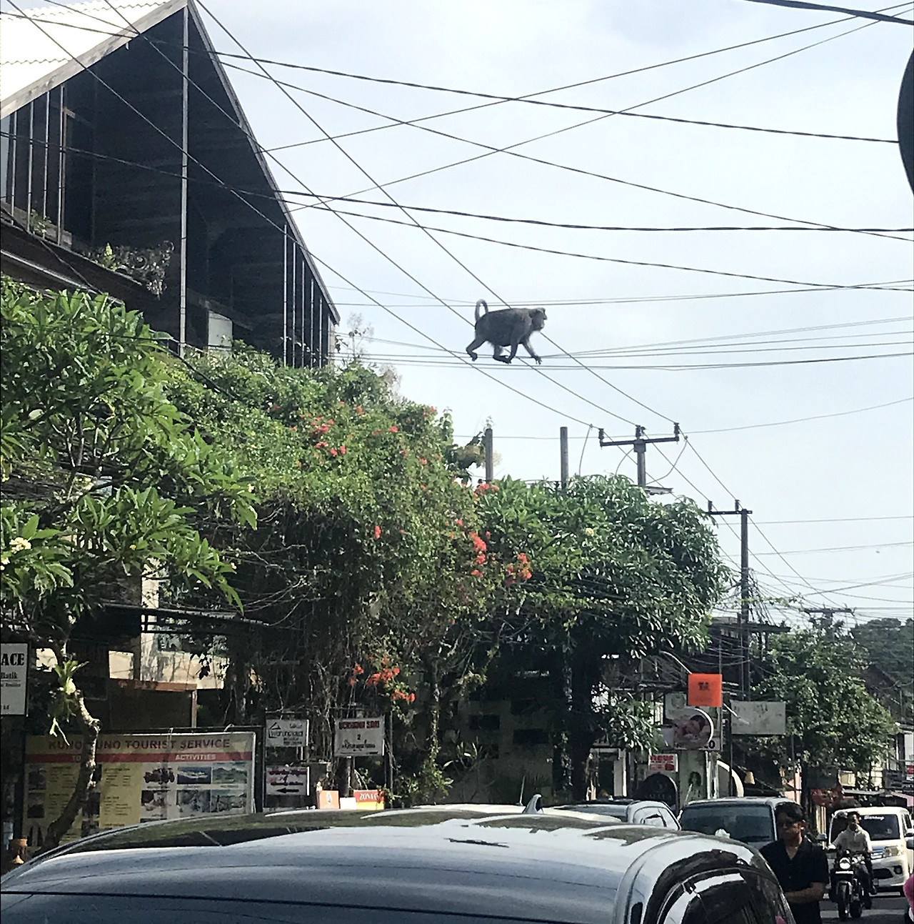길리에서 거북이를 봤을 때처럼, 우붓에선 '엥? 원숭이를 이렇게 본다고? 이렇게 길에 그냥 있다고?' 했다. 원숭이들이 도로 위에 무리 지어 있거나 전깃줄을 타고 다녀 처음엔 "어? 어~어?" 했으나 한 이틀째부터 "너네냐......" 하다가 집에 올 때쯤엔 본 척 만 척하게 되었다. 저기, 길도 좁은데 좀 비켜줬으면 좋겠는데 말이야...... 투덜투덜.