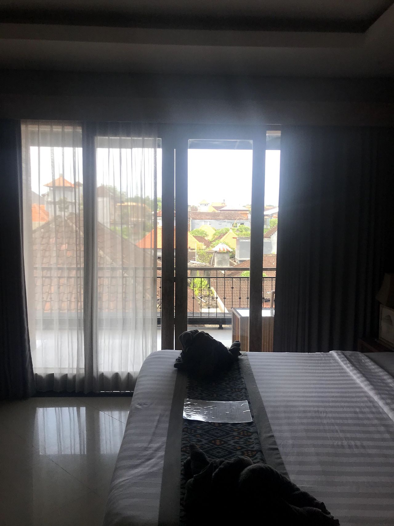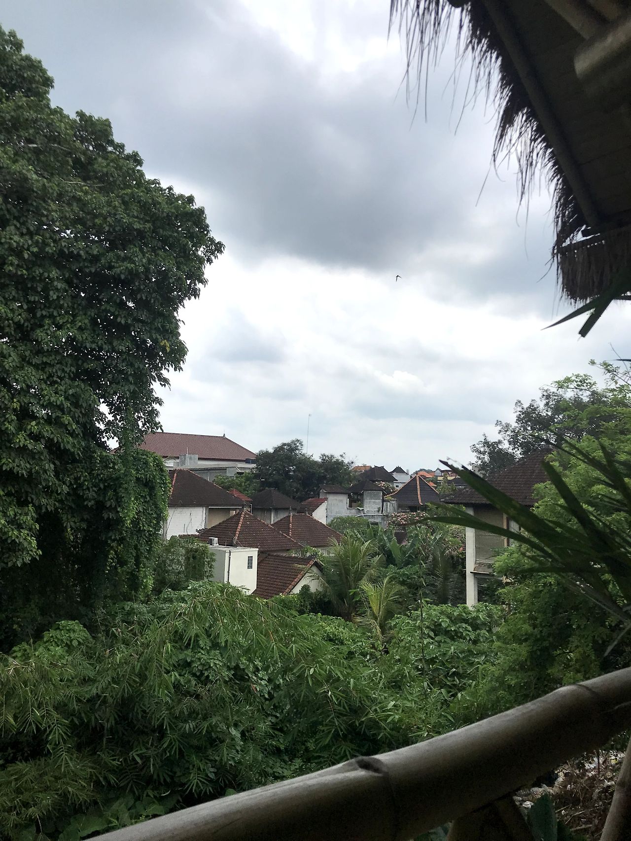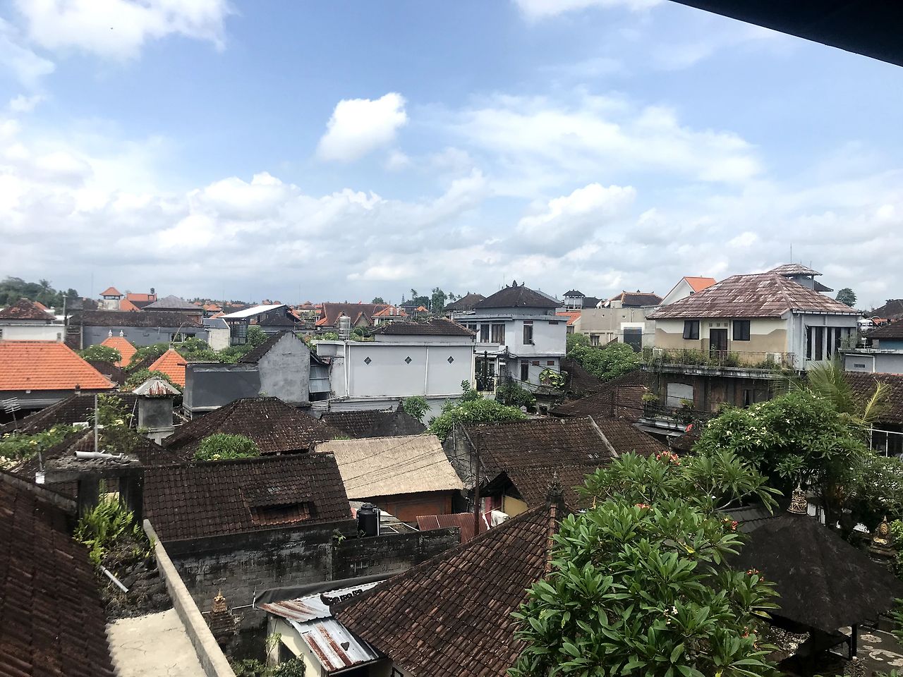 숙소는 시내 한가운데에 위치하고 있었고 내 방은 3층이라 문 밖의 뷰는 이랬다. 인터넷에서 많이 보았던 우붓의 풍경이라 '우와, 진짜로 우붓이네?' 했다. 붉은 지붕에 살짝 세월이 더해져 짙어진 빛깔 때문에 평범한 옆집 지붕도 마치 이국적인 유적지 같았다.