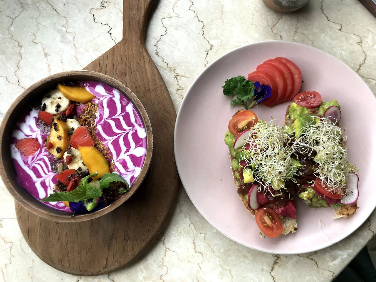 가장 안 쪽에 자리를 잡고 앉았다. 숲 속에 혼자 앉아 있는 듯한 기분이 들어 가슴이 뻥 뚫리는 기분이었다. 구글 후기가 좋았던 스무디볼과 아보카도 토스트를 주문했다. 시원하고 예쁜 음식을 먹으니 좀 살 것 같았다.