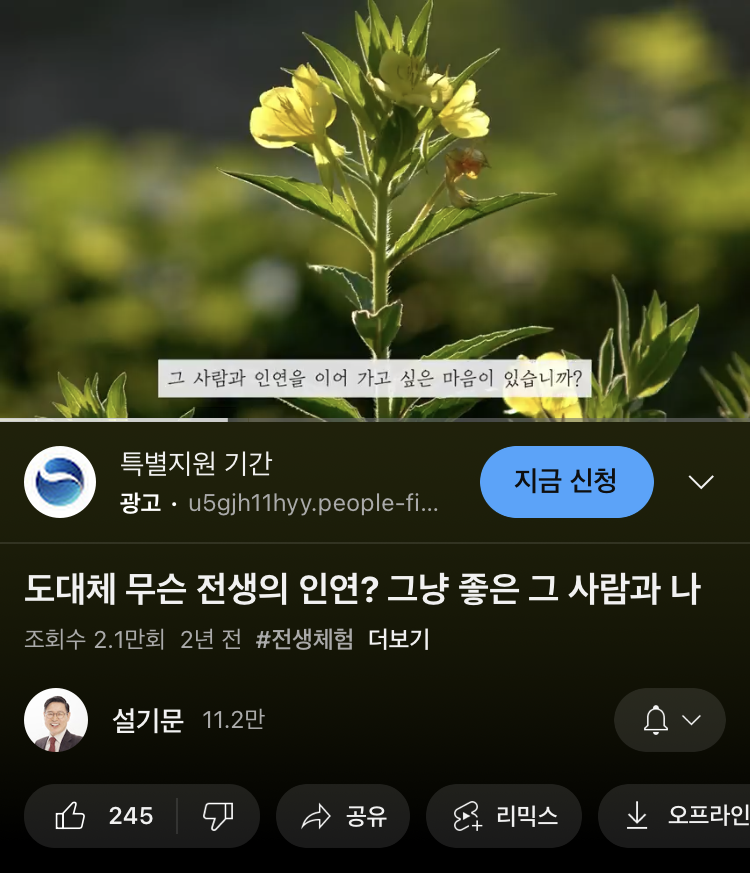 토요일 밤에 혹시나 하며 유튜브에서 전생 체험 영상을 찾아봤더니? 있었다!
