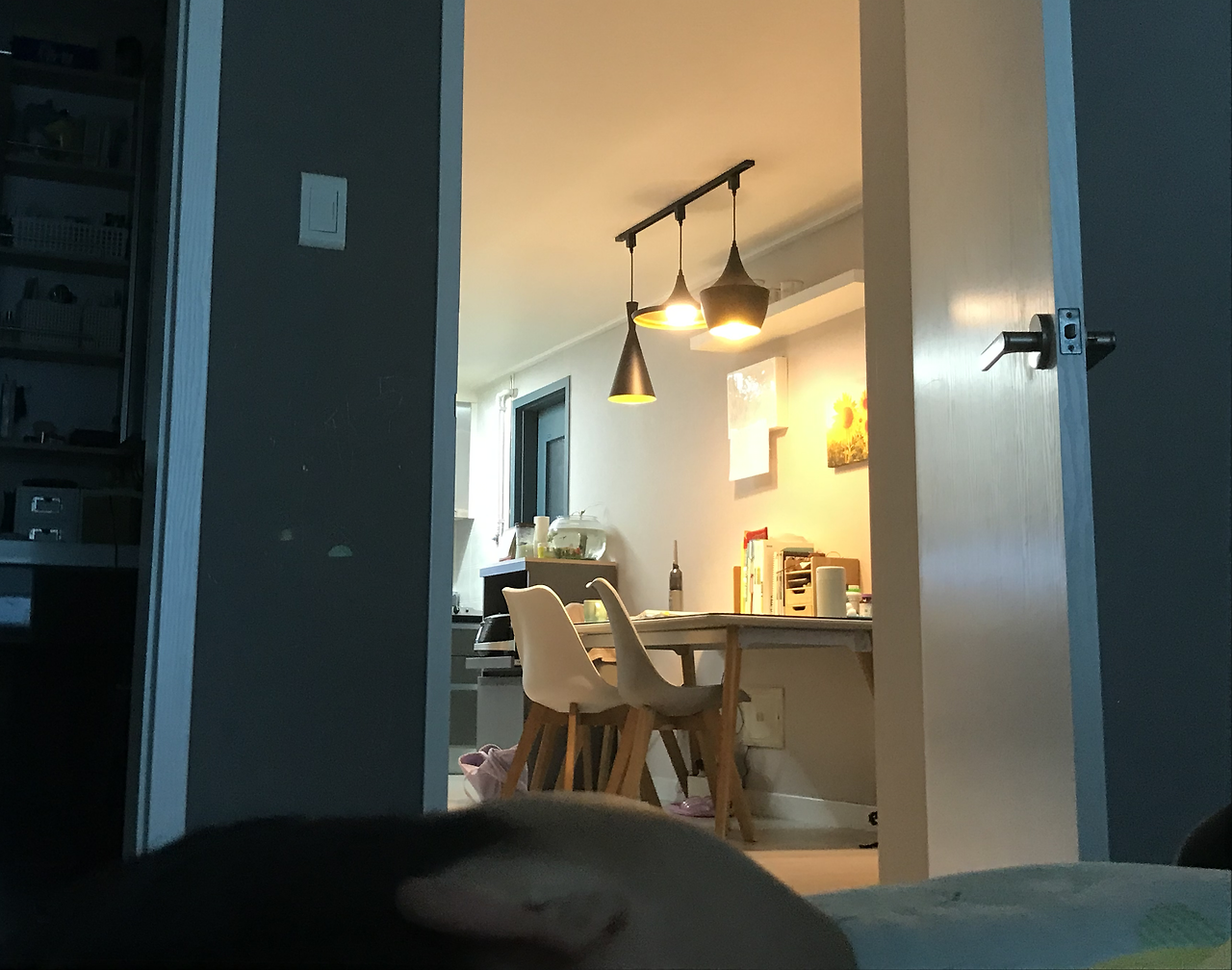 여전히 그렇게 누워 있다가 그 각도에서 보이는 거실(부엌 쪽만 보였다)을 향해 사진을 찍었다.