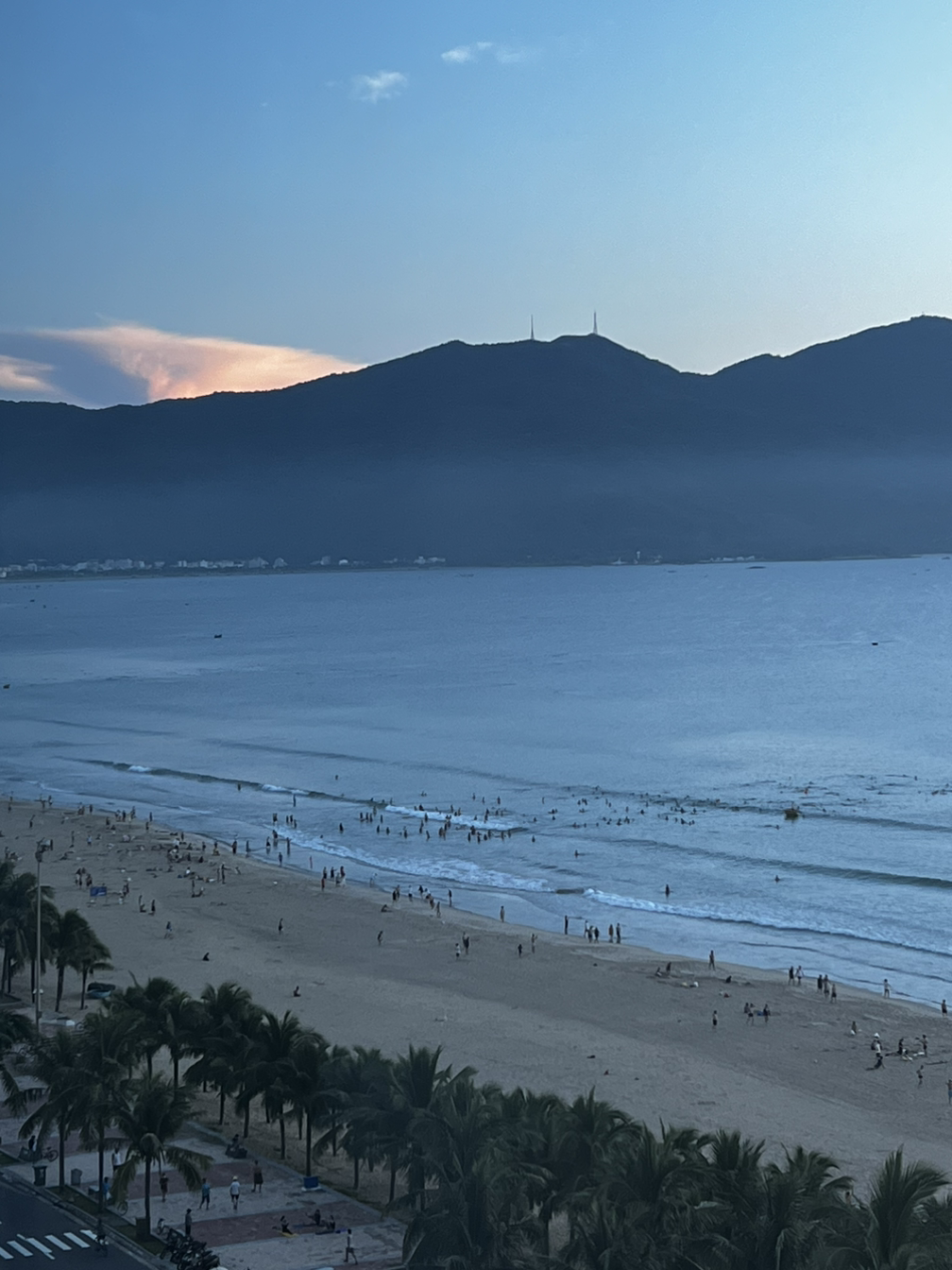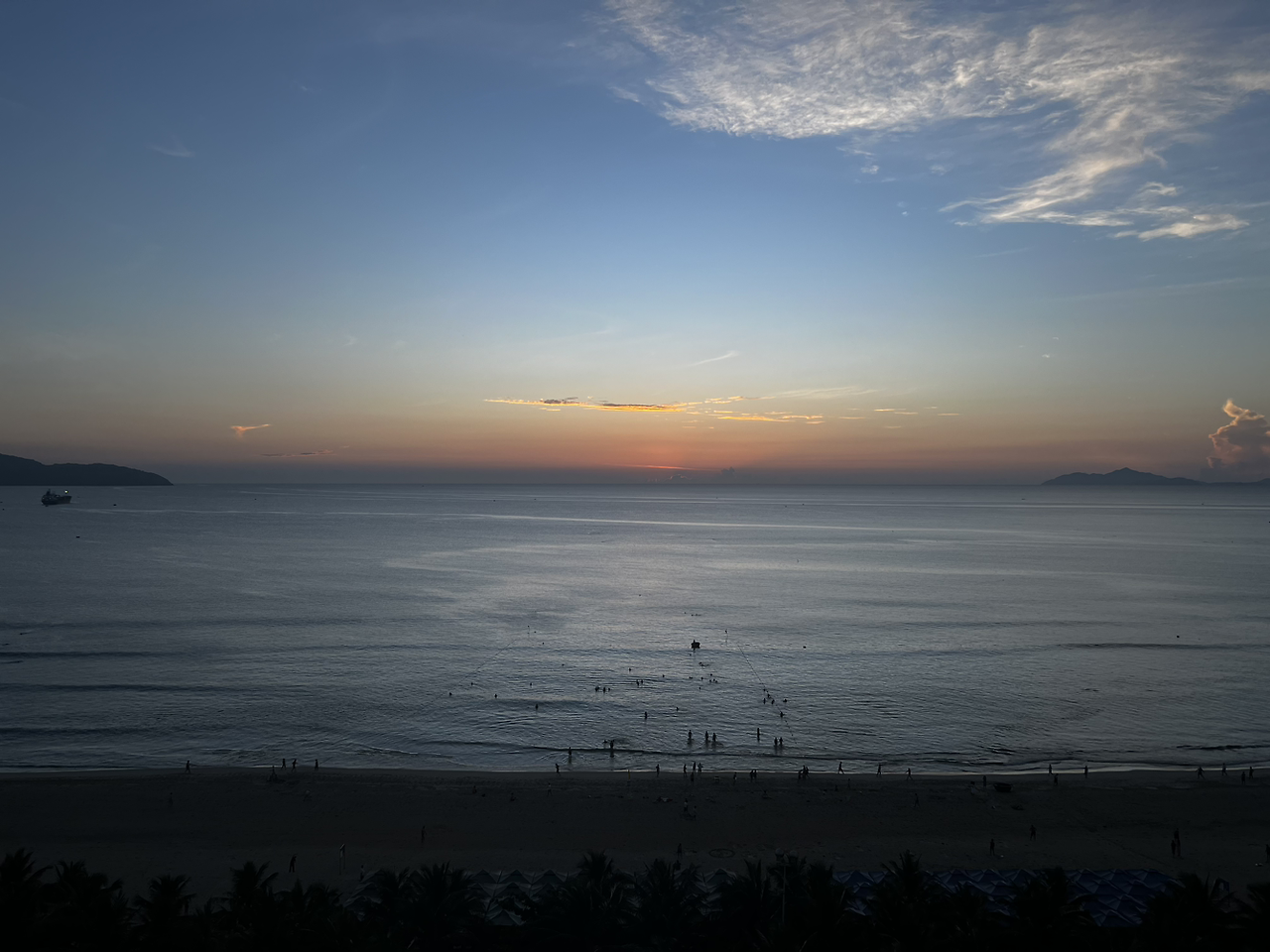 도저히 시끄러워서 잠을 잘 수가 없었다. 현재 시간 오전 5시 10분. 다낭에 도착한 시간이 어젯밤 10시 30분, 호텔에 도착한 시간이 밤 11시 30분이었다. 짐도 풀고 씻어야 했기 때문에 오전 1시가 되어서야 잠이 들었으니 이제 고작 4시간 밖에 못 잤는데 밖이 너무 소란스러웠다. 창밖을 내려다보니 해변에 사람들이 가득했다. 바닷가 바로 앞에 있는 호텔이라고, 위치는 정말 완벽하다면서 예약했던 우리였는데, 그 선택이 잘못됐던 걸까? 눈만 감고 있을 뿐 잠은 진작 깼던 터라 더 이상 누워있는 건 의미가 없다는 생각에 무거운 몸을 겨우 일으켰다.