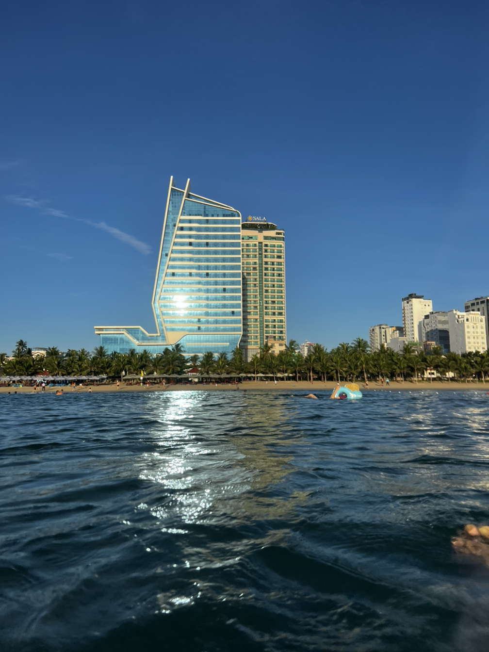 너무 신이 나서 단전에서 올라오는 기분 좋은 비명을 도저히 참을 수가 없었다. 깔깔거리며 웃고 있는 우리를 보고는 현지인들이 말을 걸어오기 시작했다. "오늘이 평소보다 파도가 높은 것 같아." "박자에 맞춰서 뛰어봐, 지금!!" 다양한 조언을 해주며 함께 즐기던 베트남 사람들이 어느 순간 하나둘 사라지기 시작했다. 그렇다. 해가 뜨기 시작했다. 등이 뜨겁고 타는 듯한 느낌에 더 이상 바다 수영은 어려울 것 같아 급히 호텔 수영장으로 피신했다.