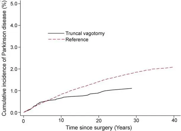 앞에서 언급한 정보들을 조합했을 때 변비가 일어나는 장에서 만들어진 Lewy body 같은 단백질 덩어리가 중뇌의 도파민 세포까지 미주신경이란 도로를 타고 올라와 문제가 된다면 도로를 막으면 - 장에서 올라오는 미주신경을 절단하면 파킨슨의 발병률을 낮출 수 있을까?라는 질문을 할 수 있게 됩니다.