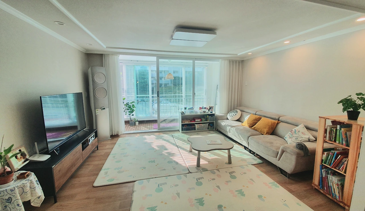 해가 차분히 스며드는 거실 전경