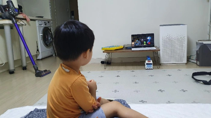 내가 그리 사랑해마지 않는, 나의 소중한 공간은 주말에만 만나게 되었다. N평 가량의 원룸에서 가족 3명이 숨만 쉬고 지낸다. 처음엔 살짝 달라진 공간에 재미를 느끼기도 했건만, 이내 속상해져 버렸다. 곰팡이가 보이는 천장, 뜨거운 물과 차가운 물을 오가는 샤워기 등. 매달 내는 돈이 적지도 않건만 삶의 질은 급하강했다. 원룸은 우리가 '작은 집'이라 칭하는데, 아이는 작은 집에는 가기가 싫단다. 장난감도 없고 TV도 없어서 그렇단다. 언어로 표현을 못 해서 그렇지 그 어린 애도 두 공간의 차이를 몸으로 느끼리라. 아이가 TV 대신 작은 노트북 화면으로 유투브를 보는 뒷모습을 찍었다. 사진을 본 지인들은 '사업 망한 사장님 같다', '어깨가 너무 슬퍼보인다' 등 웃음 터질만한 명언들을 남겼다.