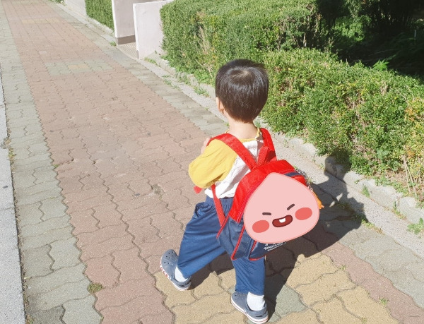 어린이집 가방 매고 가는 뒷모습이 그리 귀엽더라 (결국 내가 들게 되지만)