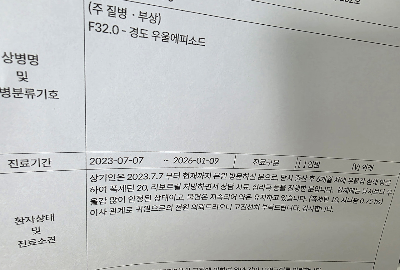 "이전 병원 기록을 보니 2023년부터 치료받으셨네요. 산후에 많이 힘드셨나 봅니다."
