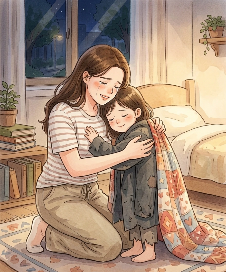 기억 속 차가운 거리에 서 있던 아이는 이제 내 품 안에서 잠이 든다. 아빠의 낡은 잠바 대신, 내가 건넨 사랑이라는 담요를 덮고서.