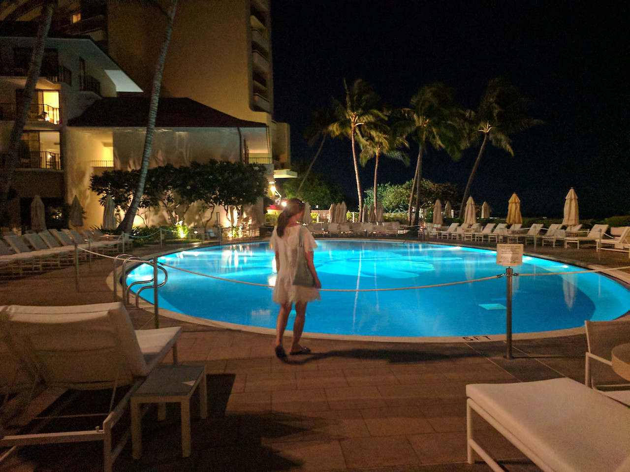 해가 기울자, 우리는 방으로 돌아와 샤워를 하고, 스파게티와 샐러드를 먹은 다음, 스필버그의 영화를 보러 갔다. 영화관을 나와 잠시 거리를 산책하고, 할레쿨라니 호텔의 우아한 풀사이드 바로 갔다. 그리고 나는 또 피나 콜라다를 마시고, 그녀는 후루츠 주스를 주문했다. -댄스댄스댄스
