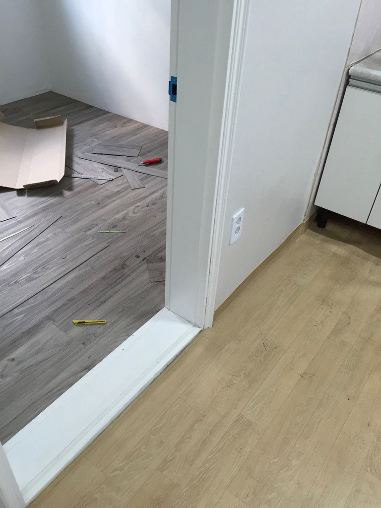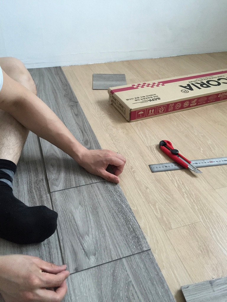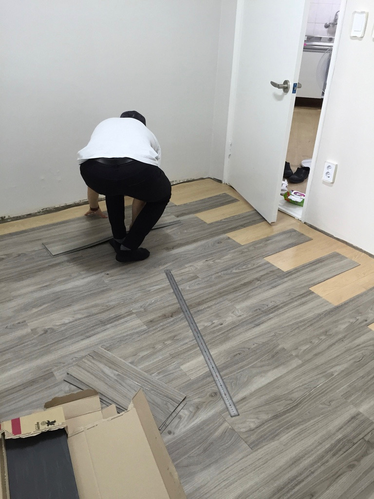 일단 방은 이렇게 했다. 대망의 거실이 남았는데.... 왜 여기는 본드로 고정하기로 했는지 아직도 후회중이다. 본드 너무나 구린 것. 본드로 고정할 꺼면 셀프 시공을 하지 말껄. 인터넷 금손들이 한걸 보고 나도 할 수 있다는 자신감을 가진것이 화근이었다. 게다가 데코타일은 애초에 가정용이 아닙니다!!! 이점 주의하세요. 솔직히 데코타일로 바닥 깐걸 후회하진 않지만 본드로 바닥 고정한건 후회한다. 아직 난방을 안틀어봐서 모르겠지만 기분이 찝찝해....