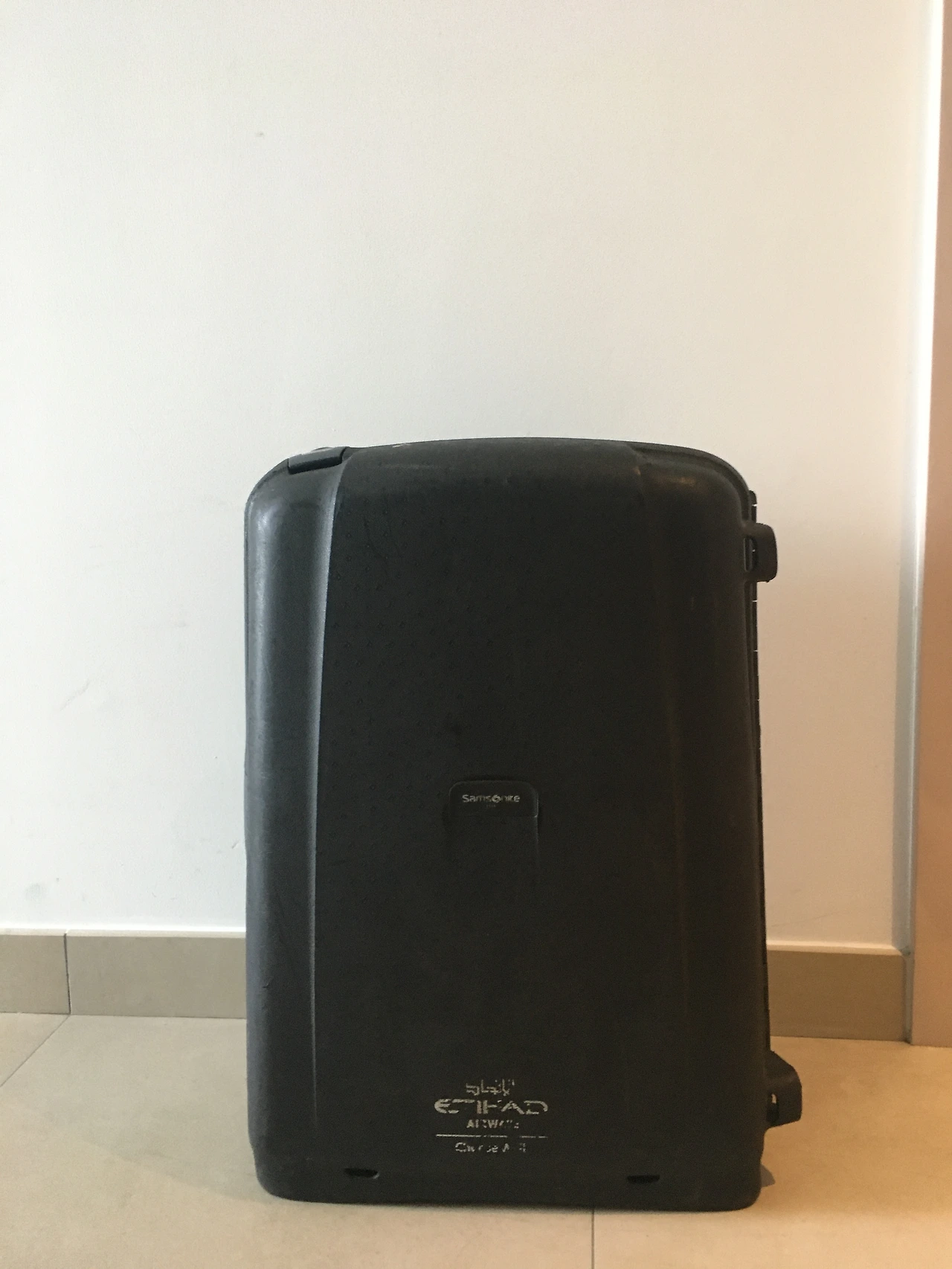 다른 중동 항공사처럼 옆에 달린 손잡이로 끌고 다니는 구버전과 샘소나이트 캐리어 제일 저렴하고 작은 사이즈의 신버전. 난 신버전의 승무원 캐리어가 있는데 이게 생각보다 사이즈가 정말 작아서 짐을 많이 가지고 가야 하는 날에는 구버전을 가지고 있는 동료한테 빌려서 가져가거나 혹은 그만두는 승무원에게 부탁해서 바꾸곤 한다. 난 플랫 메이트가 구버전의 캐리어를 가지고 있어서 빌려준다고 했는데 호기롭게 괜찮다고 했다가 이번에 진짜 애를 먹었다.
