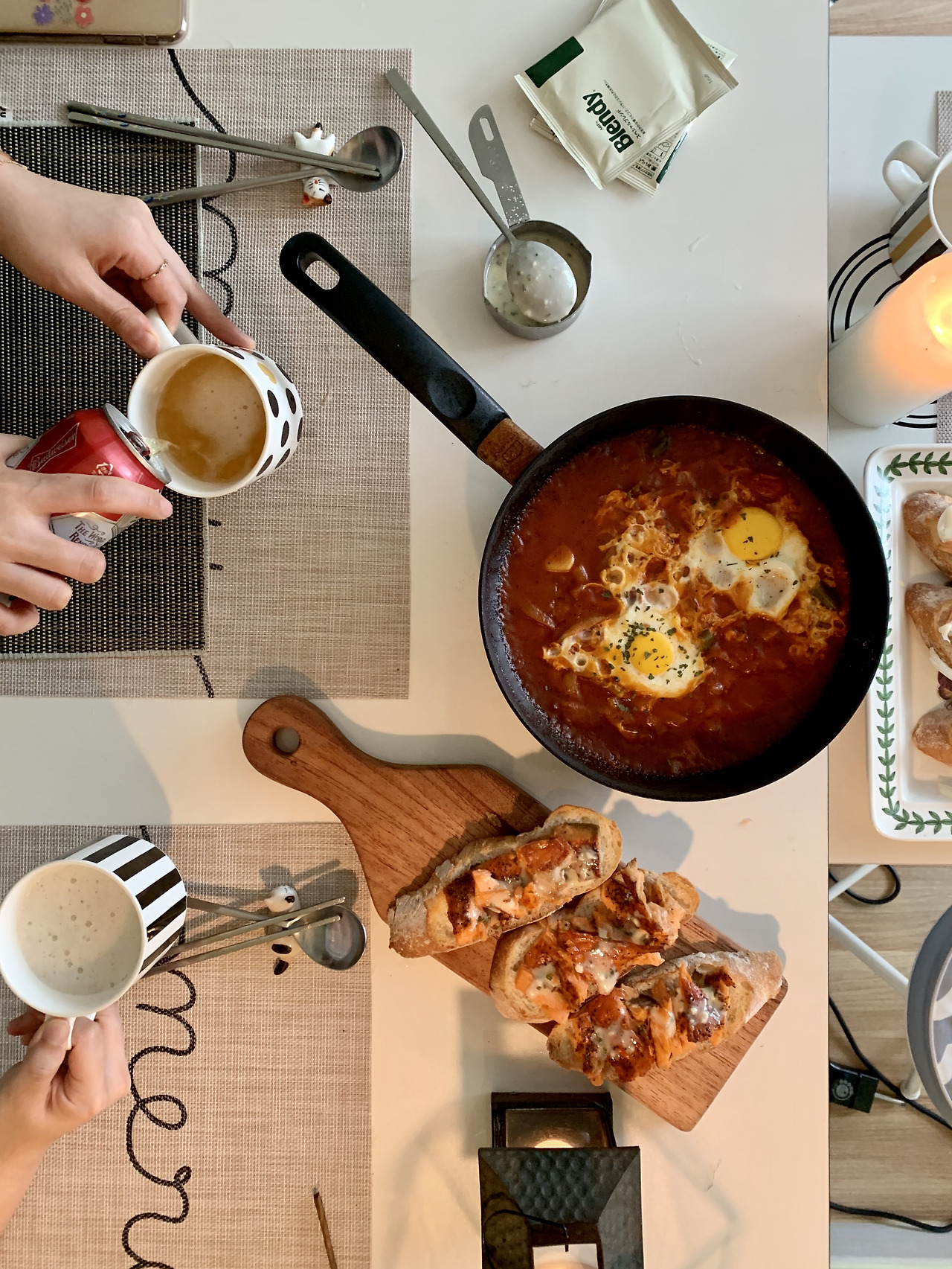 이번 주 토요일에는 헬조선 논란에 시원하게 사이다 아니 ‘에그인헬’을 먹여줄 지방대학교, 인문계, 이십 대 중후반의 대학 동기들을 불렀다. 참고로 나는 중간에 학부를 이적해 한동안 그들 사이에서 전과자로 통했다(너그러운 용서에 심심한 감사를). 에그인헬은 샥슈카라고도 불리는 중동식 토마토 달걀 스튜로, 연어 토스트를 곁들여 든든하게 먹이려고.