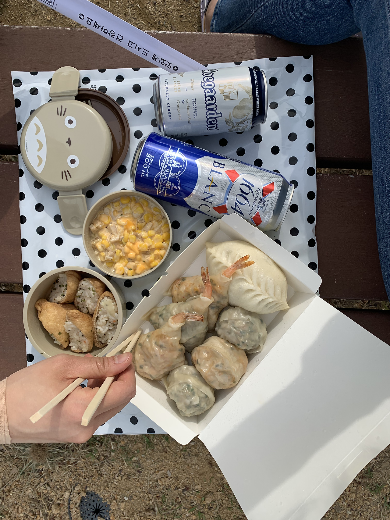 4월 15일은 지방선거가 있는 날이었고 1번을 찍어도, 2번을 찍어도 풀리지 않을 답답함에 집 앞 벤치에서 점심이나 한 끼 하기로 했다. 월급 전 주인만큼 가성비와 가심비를 챙기는 메뉴가 좋겠다. 설날에 선물 받아 아직 남아있는 명란젓으로 명란 마요 유부초밥을, 1200원짜리 캔 옥수수로 콘치즈를 만들어 가기로.