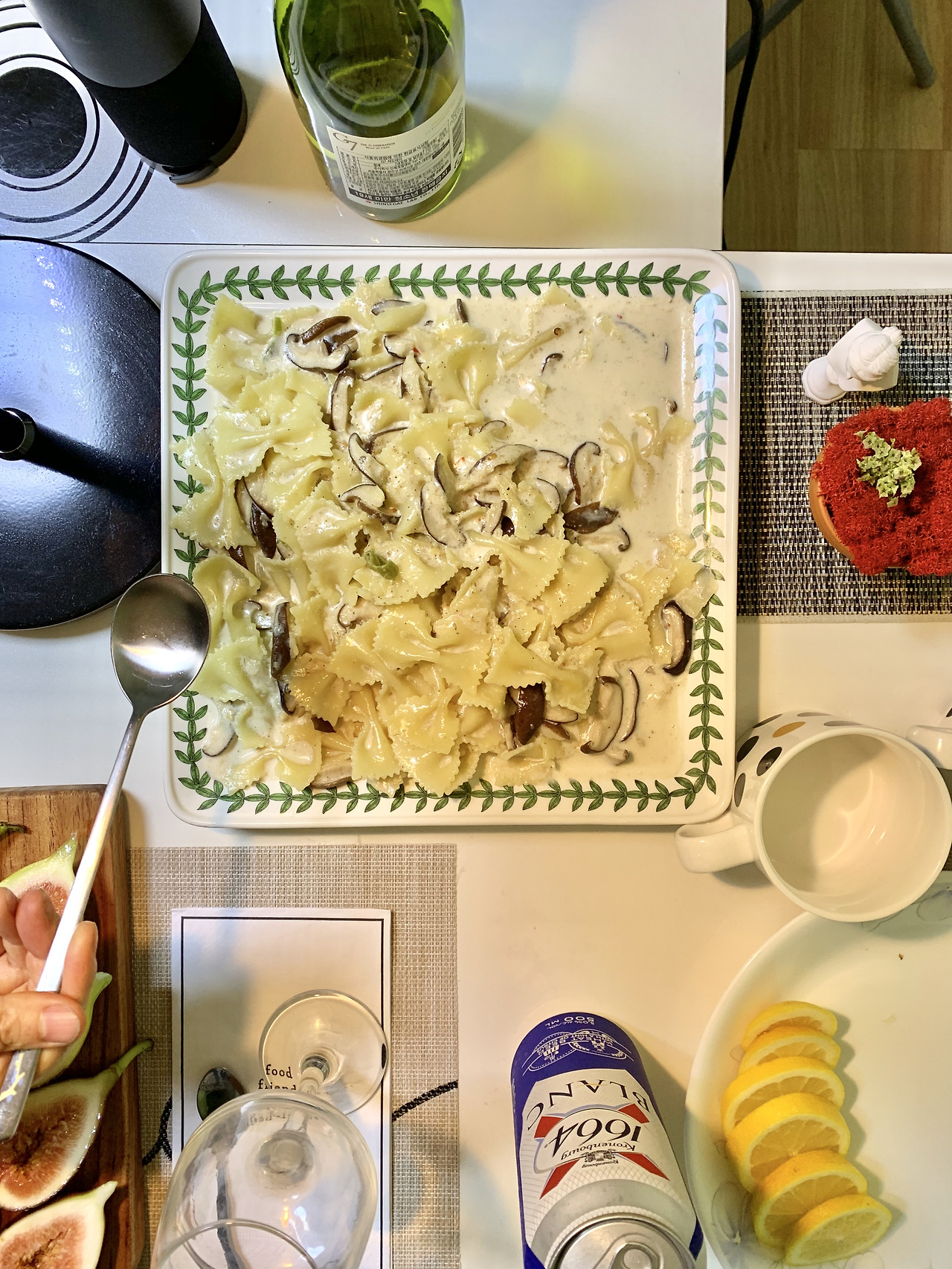 5. 그릇에 파르펠레 면을 담고, 버섯 들깨 크림을 자작하게 올려 완성