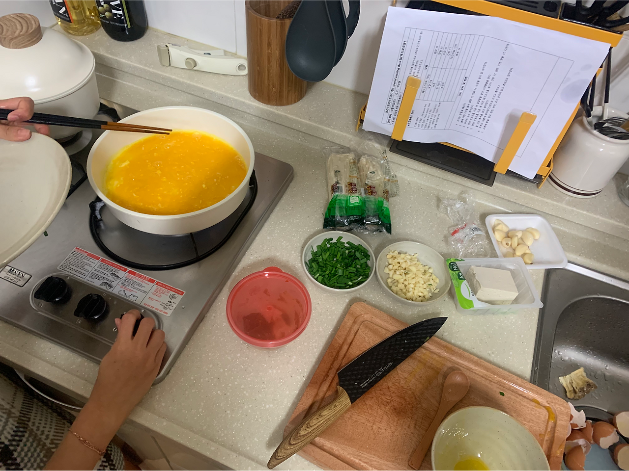 3. 볶은 소고기를 옮겨두고, 프라이팬에 식용유를 약간만 두른 뒤 계란을 깨어 저어가며 스크램블 만들기