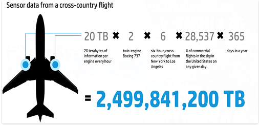 위키본[2]에 따르면 항공사가 빅데이터를 활용하는데 가장 큰 이유로 엄청난 양으로 생산해내는 기체 관련 데이터 관리의 필요성을 들었다. 2013년 조사에 따르면 항공기 엔진에서 발생하는 데이터는 항공기 한 대당 연간 약 25억 페타바이트(PB)로 조사되었는데 분석을 위해 데이터 센터에 저장, 전송 과정에 있어 속도나 오류, 전송용량 한계를 해결해야 할 과제로 제시하고 있다.
