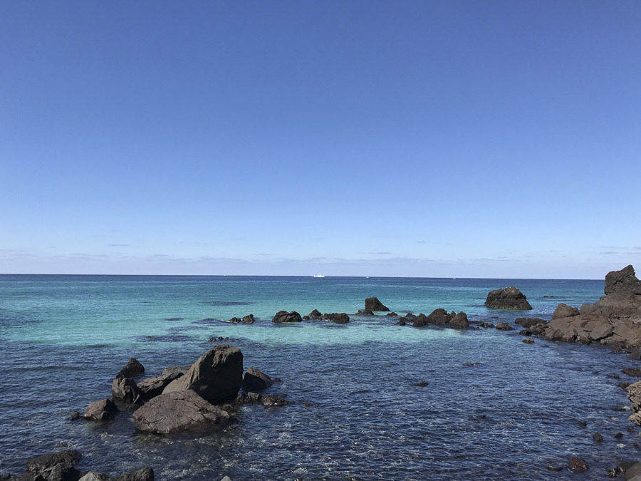 둘째 날은 두 팀으로 나뉘어 움직였다. 일행들은 억새밭에 가겠다고 했고 나는 반나절 동안 혼자만의 시간을 갖기로 했다. 한담해안산책로에 내려 해안선을 따라 걷기 시작했다. 파도 소리를 들으며 정처 없이 걷다 보니 정신이 조금 돌아왔다. 1시간 정도 걸으면 될 거라 예상했는데, 목적지로 설정한 바다의 술책이 생각보다 멀어 2시간 남짓 걸렸다. 중간에 길이 끊겨 둑을 오르기도 했고, 본의 아니게 찻길을 걸을 땐 태양이 유독 따갑게 느껴지기도 했다. 그럼에도 좋았다. 바다가 예뻐서 좋았고, 혼자라서 좋았고, 곧 다시 만날 친구들이 있어 좋았다.