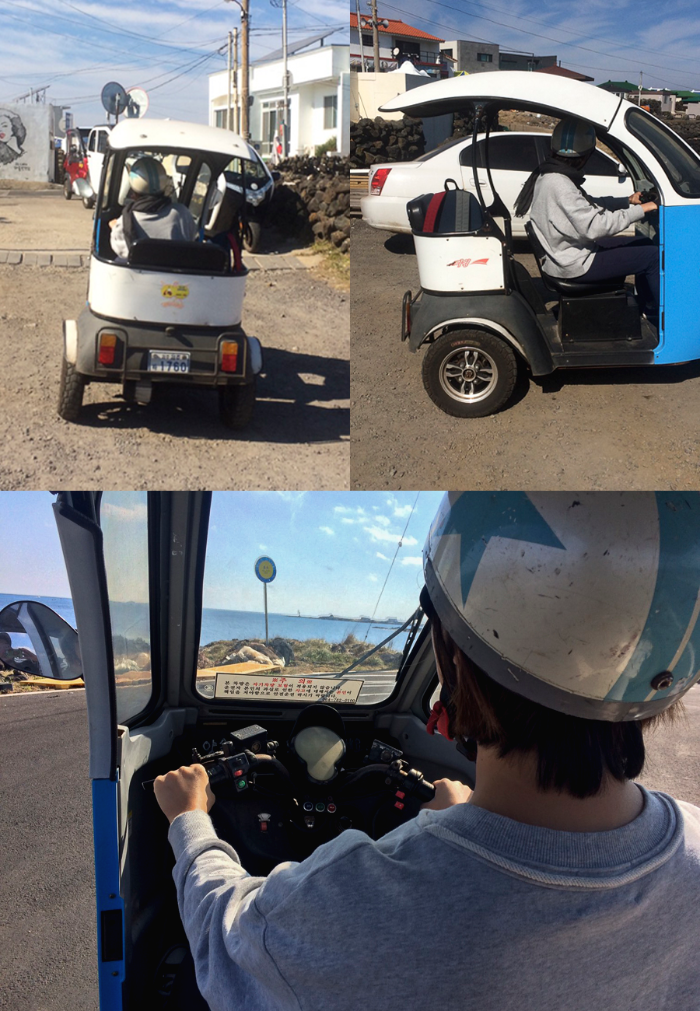 이른 아침 비행기로 돌아왔기 때문에 셋째 날이 사실상 마지막 날이었다. 우도에 가고 싶었고 막내가 따라나섰다. 자전거를 탈까 전기차를 탈까 고민하다가 서로의 저질 체력을 감안해 전기차를 타기로 했다. 안내직원의 설명이 휘리릭 끝나고 전기차에 올랐다. ‘앞으로 나가긴 할까?’ 걱정스러운 몰골이었지만 덜덜 대면서도 잘 나갔다.