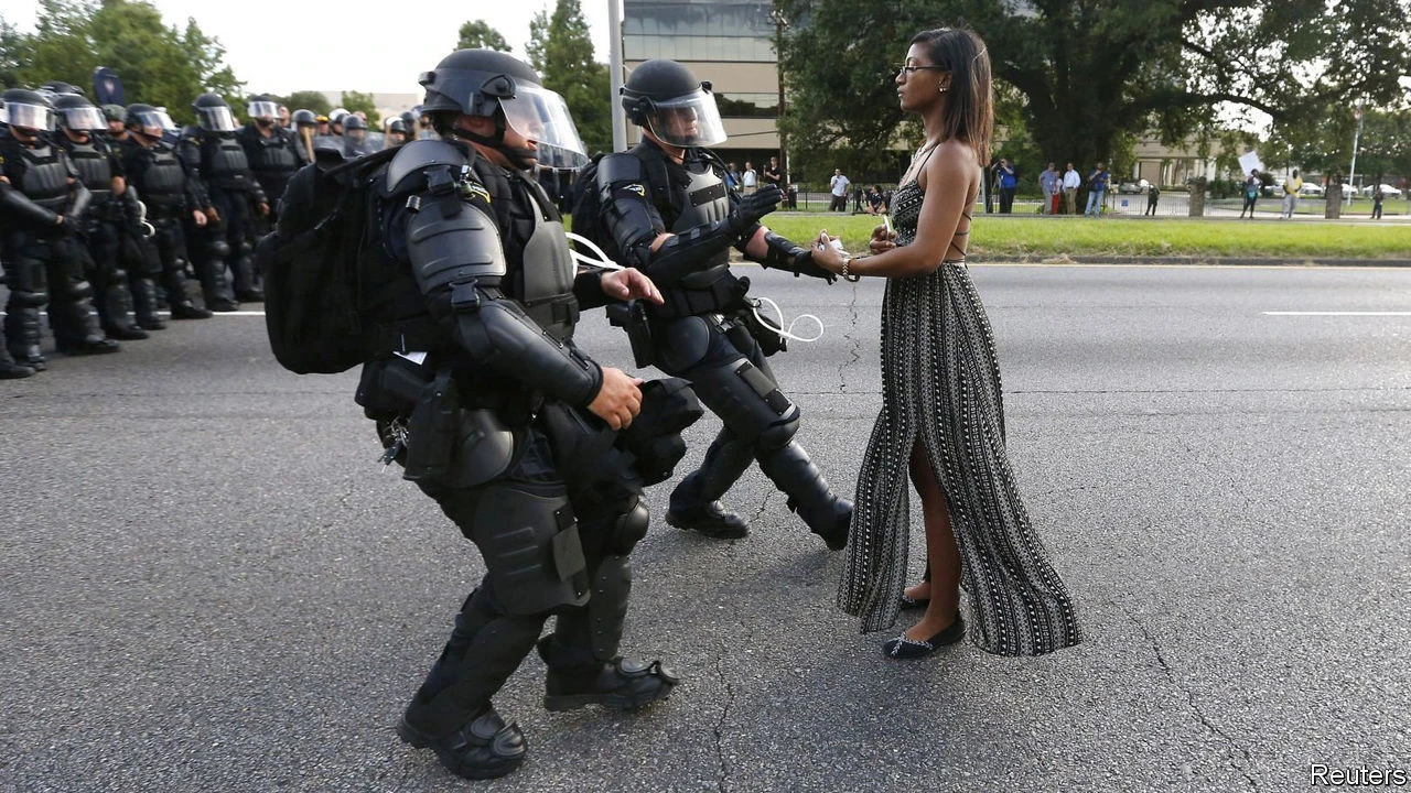 2018년 Black Lives Matter 시위자를 구속하는 미 경찰. 약한 자들은 눈 앞에서 벌어지는 일을 용납해야만 할까요? (Reuters via the Economist)