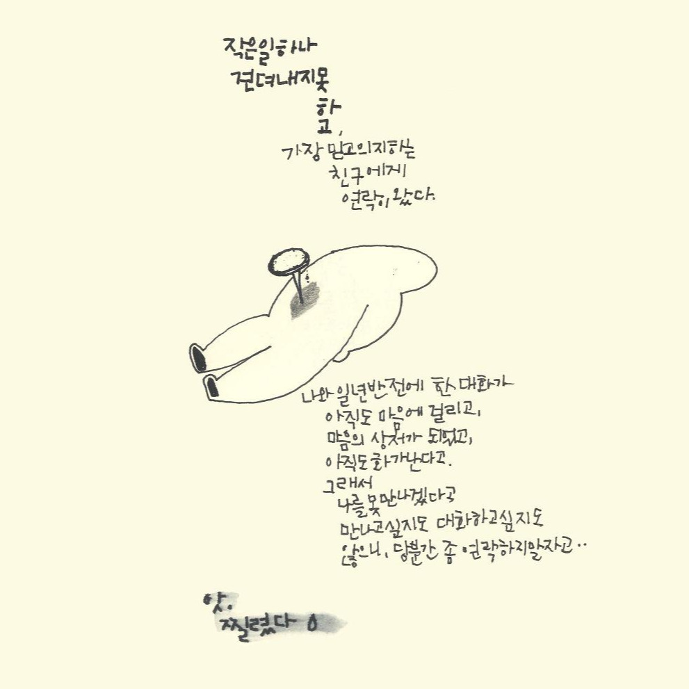 사실 이 모든 순간순간들은 그 누구도 도와줄 수 없었고, 끊임없이 아무 일도 아닌데 혼자 불안해지는 나를 나무라고 화내는 내 안에 있는 나랑 타협하는 것도 사실 일이었다.