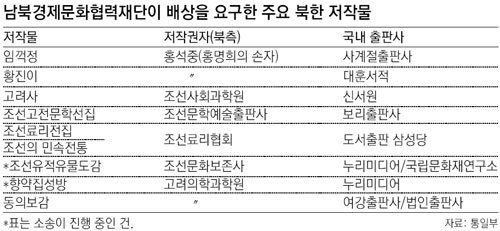 북한 저작물도 드물지만 우리나라에 등록돼 있다. 2007년 무용가 최승희의 장구춤 '독무'와 부채춤 '군무'를 촬영한 영상저작물이 북한 저작물의 첫 등록 사례다. 현재도 남한 방송사들은 북한 조선중앙TV에 매년 꼬박꼬박 1억~2억여 원의 저작권료를 지급하고 있다.