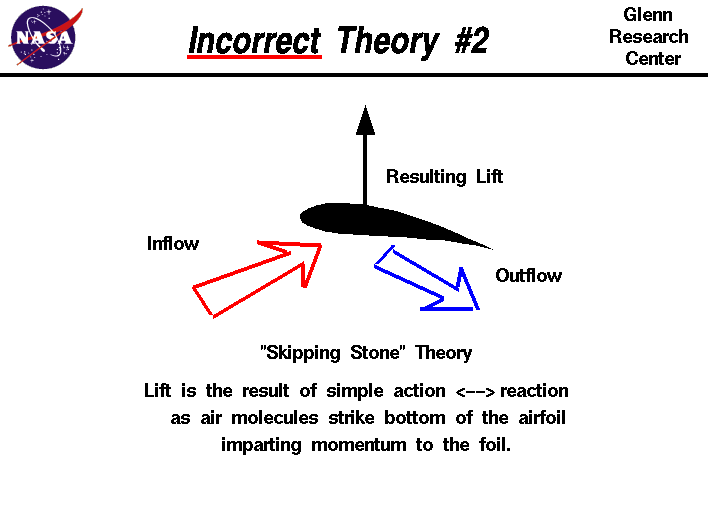 뭐 사실 깊게 들어가면, 이 물수제비 이론 역시 완전히 틀린 것은 아니다. 우주왕복선 같은 공기가 희박하고 아주 적은 공기분자만 날개 윗쪽에 부딪히는 특이한 성격의 비행기에서는 이 이론이 맞을 때도 있으니 말이다.