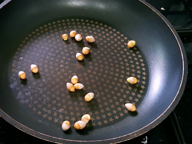 1. 프라이팬 위에서 뜨거운 열을 받은 은행은 곧 토독토독 제 몸을 튀어 올리기 시작한다. 그러면 벌써부터 구수한 냄새가 은은하게 퍼지는데, 군침 나는 걸 인내심 있게 참고 노릇해질 때까지 조금 더 구워야 한다. 그래야 쓴맛 없이 달달하고 고소하게 먹을 수 있다.